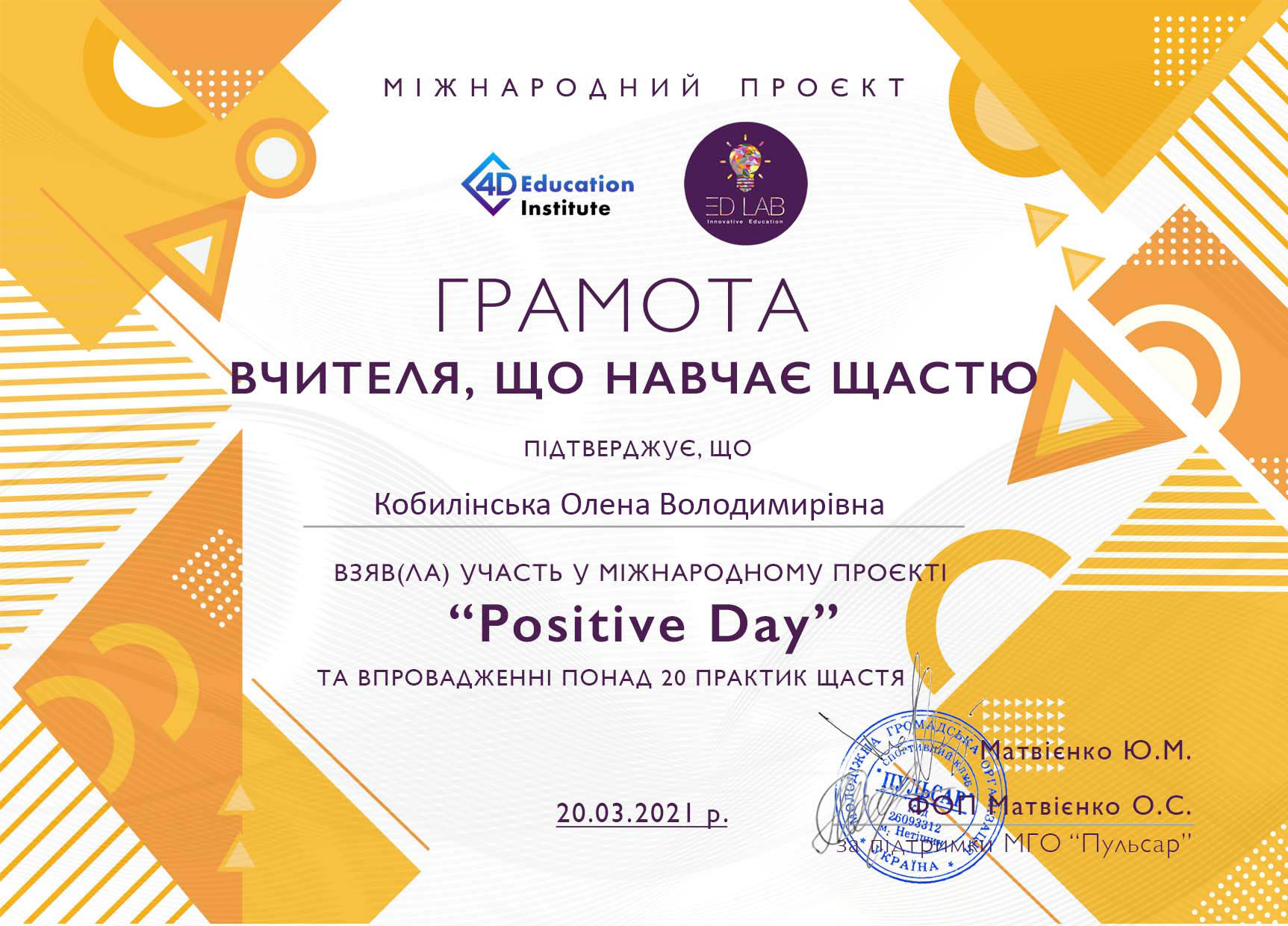 • опанувано техніку MIndFulless (практик уважності),  методики емпатійного слухання  й ефективної комунікації для роботи з дітьми передшкільного віку;