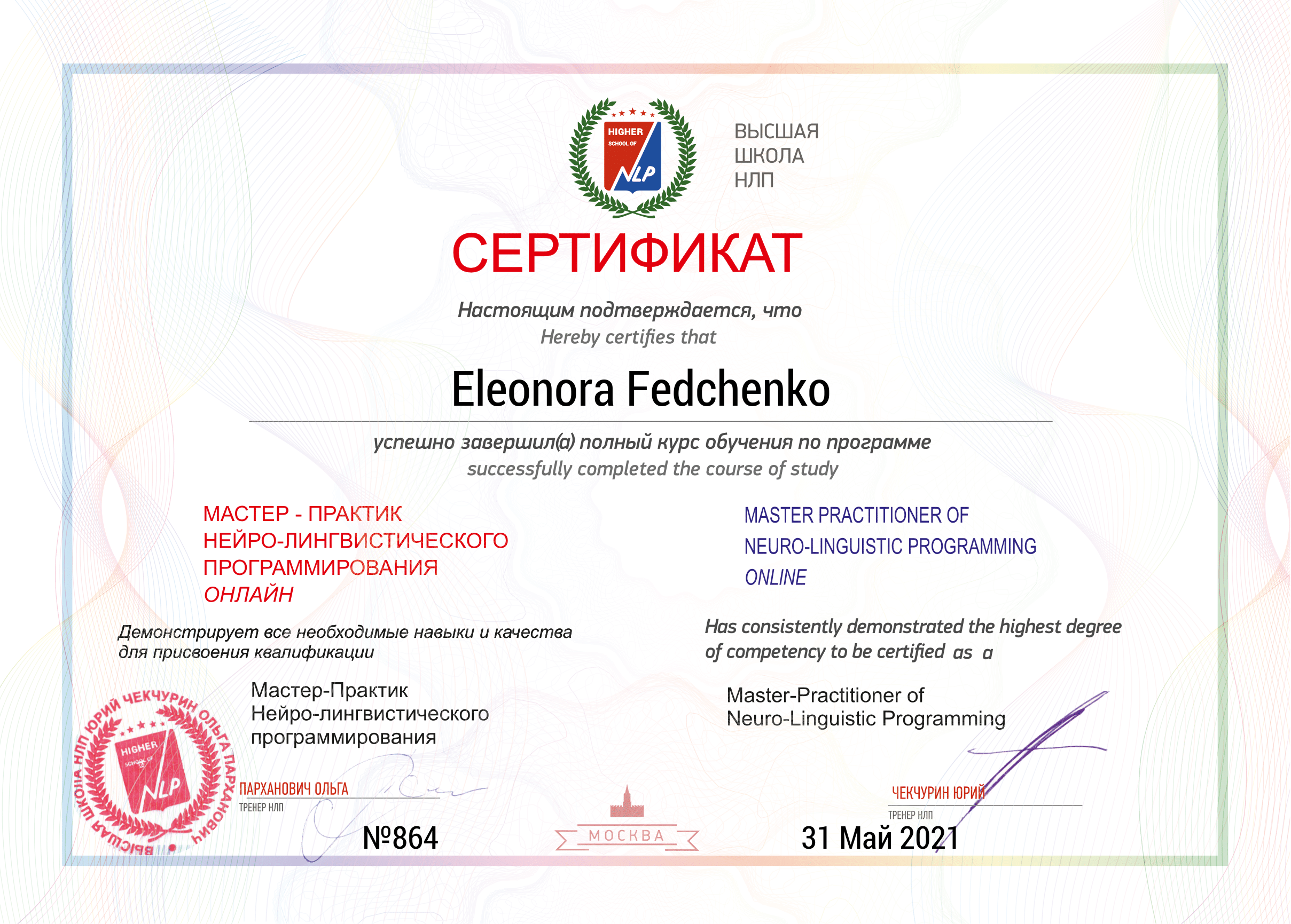Федченко Елеонора Олександрівна Професійний Коуч, Професійний Ментор, НЛП-Майстер, Бізнес - ТренерНапрями підвищення кваліфікації: