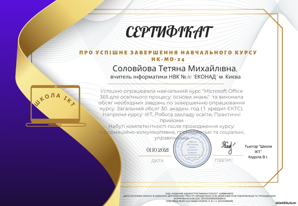 Школа інформаційно-комунікативних технологій (тьютор Валентина Кодола)Інформація про розробника (розробників):