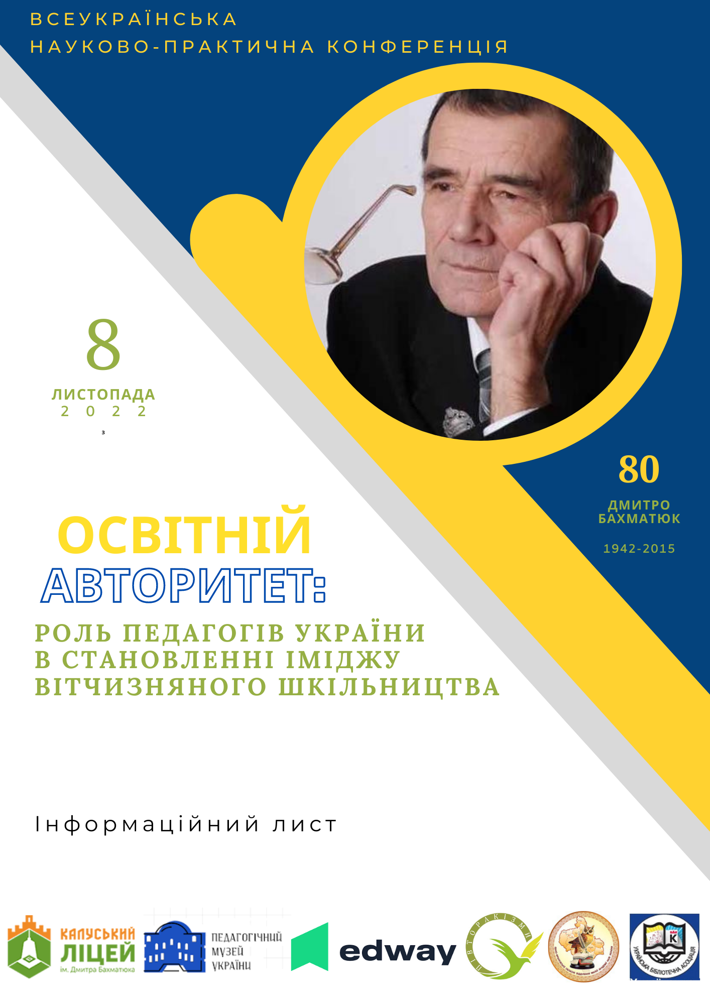 | 10:00–10:30 | Відкриття конференції. Мислительно-мистецька імпреза з нагоди 80-ліття Дмитра Бахматюка “ПЕДАГОГІЧНА СПІВПРИЧЕТНІСТЬ: ОСВІТЯНСЬКИЙ ЕКСКЛЮЗИВ” |