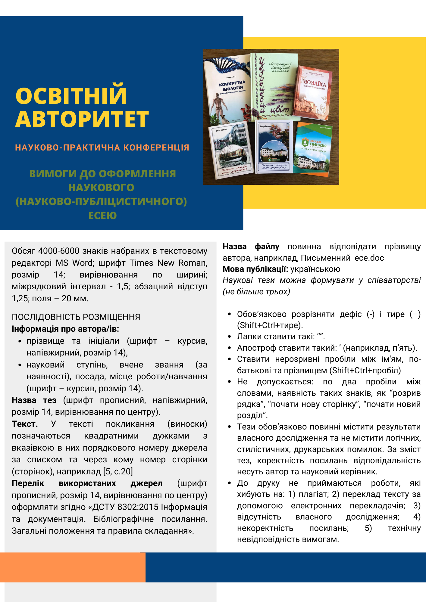 - публікація статей чи/або есеїв (5–12 ст.);